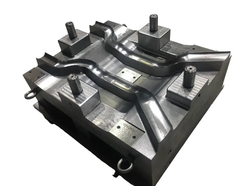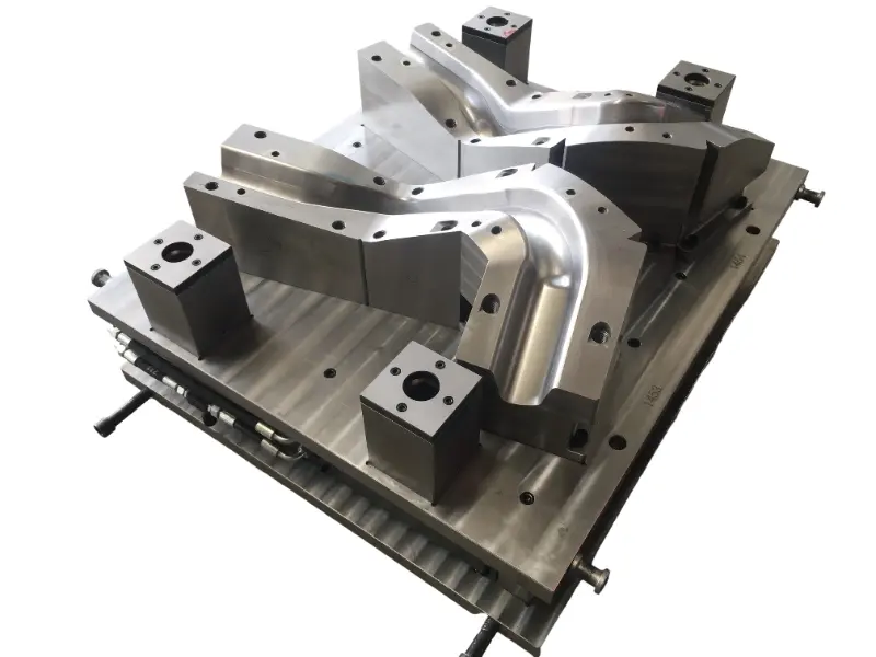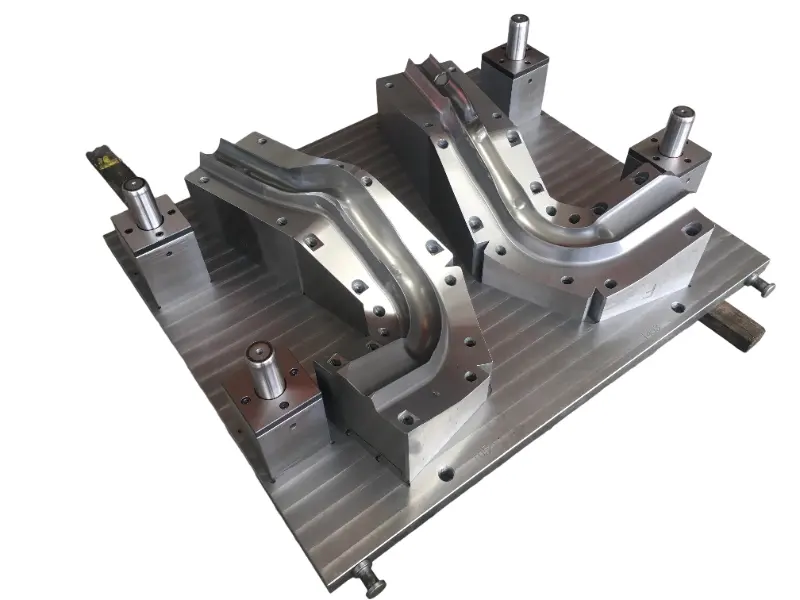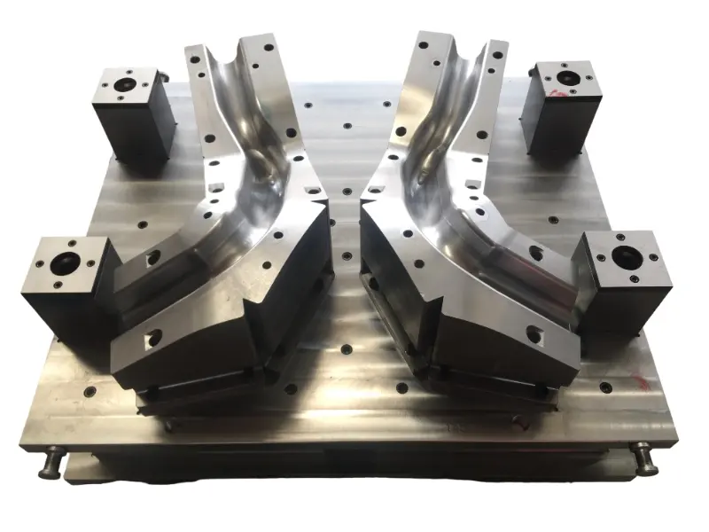من الناحية الهيكلية، يعتمد قالب تمدد مادة الأنبوب تصميمًا مركبًا يجمع بين "تقييد التجويف + محرك الضغط الداخلي"، ويتكون بشكل أساسي من قالب خارجي، وآلية تمدد داخلية، وعنصر إحكام، وجهاز تثبيت، وآلية فك القالب. عادةً ما يكون القالب الخارجي هيكلًا منقسمًا (مثل القوالب المنفصلة اليسرى واليمنى، والقوالب المغلقة العلوية والسفلية)، وتتميز المعالجة الداخلية بتجويف يطابق تمامًا الشكل النهائي للأنبوب (بما في ذلك الهياكل المعقدة مثل النتوءات والانحناءات والأقطار المتغيرة). يُخصص التجويف بفجوات صب مناسبة وفتحات عادم لضمان ملاءمة مادة الأنبوب للتجويف تمامًا تحت الضغط العالي، مع تجنب عيوب الصب الناتجة عن بقايا الغاز.