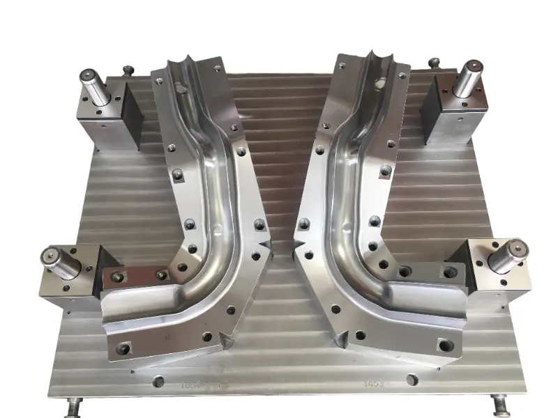هذا هو السيناريو التطبيقي الأكثر جوهرية لقوالب تمدد الأنابيب، والتي تُستخدم بشكل رئيسي لإنتاج تجهيزات الأنابيب غير المنتظمة لأنظمة الطاقة في السيارات وأنظمة الشاسيه وأنظمة العادم. على سبيل المثال، يمكن تشكيل أنبوب عادم السيارة (بما في ذلك غلاف المحول الحفاز ثلاثي الاتجاهات) عن طريق دمج هيكل القطر المتغير والانحناء والبارز لأنبوب العادم من خلال قالب تمدد الأنابيب، مما يتجنب مشاكل تآكل اللحام وتسرب الهواء الناتجة عن عمليات اللحام التقليدية، مع تقليل عدد الأجزاء وتحسين القوة الكلية وختم أنبوب العادم؛ يمكن التحكم بدقة في أنبوب زيت الفرامل الهيدروليكي وأنبوب زيت التوجيه لهيكل السيارة بواسطة القالب لضمان اتساق القطر الداخلي وسمك جدار أنبوب الزيت (الانحراف ≤ 0.1 مم)، مما يضمن نقلًا مستقرًا للزيت الهيدروليكي تحت ضغط مرتفع وتجنب خطر انفجار الأنبوب الناتج عن سمك جدار غير متساوٍ لأنبوب الزيت؛ يتم تشكيل أنابيب تبريد البطاريات وأنابيب تبريد المحركات لمركبات الطاقة الجديدة من خلال قوالب التمدد مع أنابيب تبريد متعددة القنوات، والتي يمكن أن تزيد من مساحة تدفق وسيط التبريد، وتحسين كفاءة تبديد الحرارة، وتلبية احتياجات تبديد الحرارة العالية لبطاريات ومحركات مركبات الطاقة الجديدة؛ بالإضافة إلى ذلك، يمكن أيضًا تكثيف أنابيب الإطار وأنابيب شعاع مكافحة الاصطدام لجسم السيارة محليًا أو تقليل قطرها من خلال قوالب التمدد، والتي يمكن أن تحسن القوة الهيكلية مع تقليل الوزن والتكيف مع اتجاه التصميم خفيف الوزن في السيارات.
