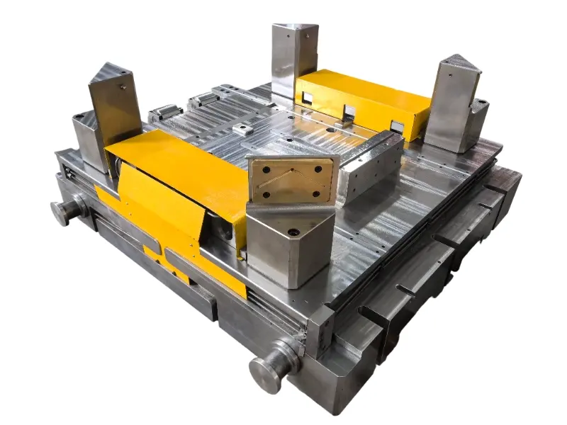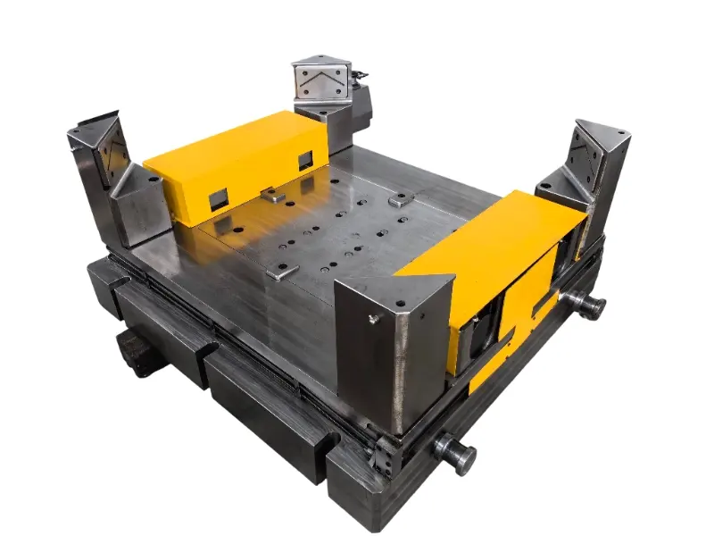 Used on large forging equipment, the forging equipment used is below 4000T, and the forging equipment type is hot forging press. The Hydraulic Locking Forging Die Set, as the core connecting component between forging equipment and molds, is a key basic component to ensure stable and efficient forging processes. It achieves automatic mold replacement, rapid clamping, precise positioning, reduces personnel installation time, and improves production efficiency by configuring a small hydraulic system, as well as hydraulic cylinders and control systems. At present, it is mainly used in the automation production process to cooperate with six axis robots to complete the production of aluminum forgings.